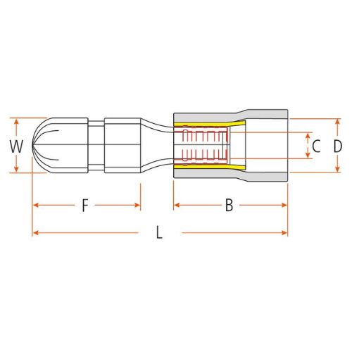 Pre Insulated Bullet Terminal, Standard Grip - Male, 5.0mm, Blue (1.5 - 2.5mm) (25 Pack)