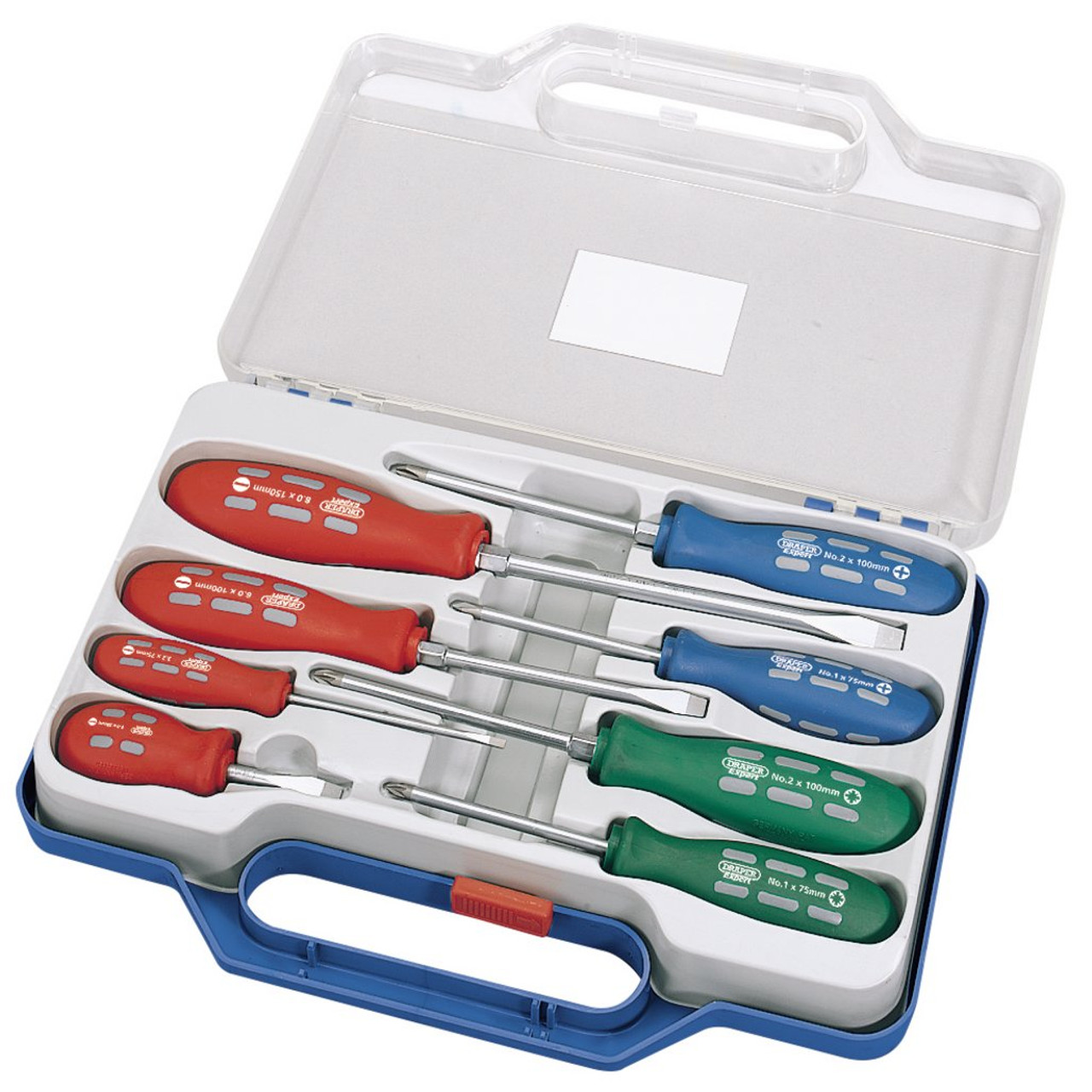 Expert Quality, screwdrivers with hardened SVCM satin chrome plated blades and sand blasted tips. The handle is manufactured from impact - resistant heavy - duty 'soft grip' polypropylene that's colour coded for easy recognition. Some blades have hexagon bolsters enabling extra power to be obtained by use of a spanner. Packed in tray with plastic insert.