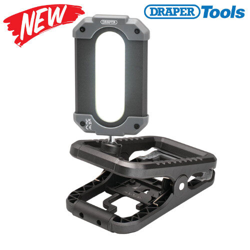 This rechargeable work light features a clamp and an adjustable magnetic base that rotates through 180°. Its head swivels 270° to direct the beam as needed, and it also has a hanging hook for added hands-free convenience. The light offers three brightness settings - low, medium and high and can also be used as a power bank to charge mobile devices on the go. It is powered by a rechargeable lithium-ion battery and comes with a USB port for easy charging using the provided USB-C cable. Additionally, it includes an LED indicator to display the charging status.
