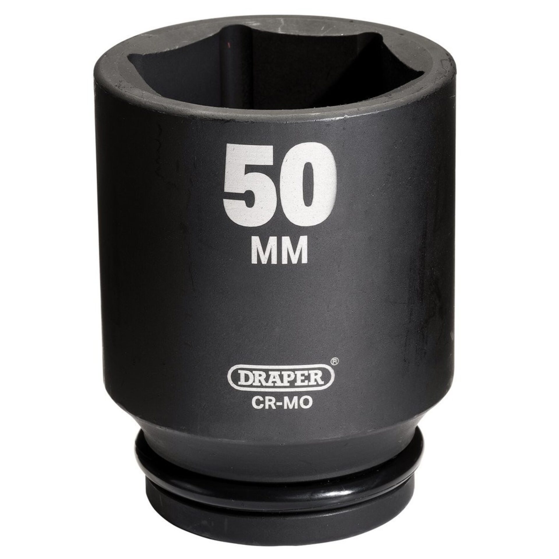 This Draper Hi-TORQ® 6-point deep impact socket is forged from hardened chrome molybdenum steel. Black phosphate finish for corrosion protection. For use with electric or pneumatic impact wrenches with a 3/4" drive. Supplied with ring and pin.