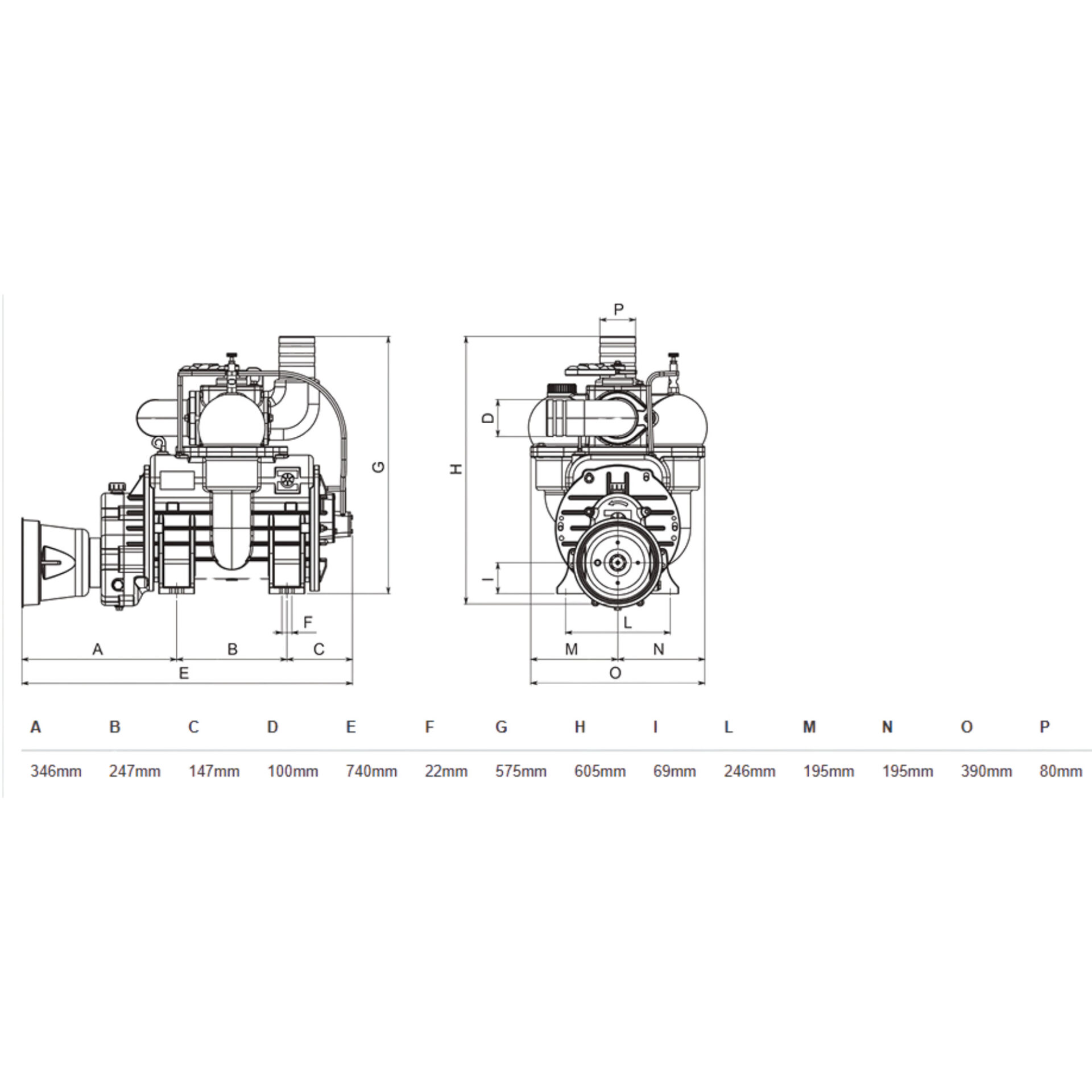 - Power absorption @ 1.5 bar absolute, 540 rpm: 21 kW