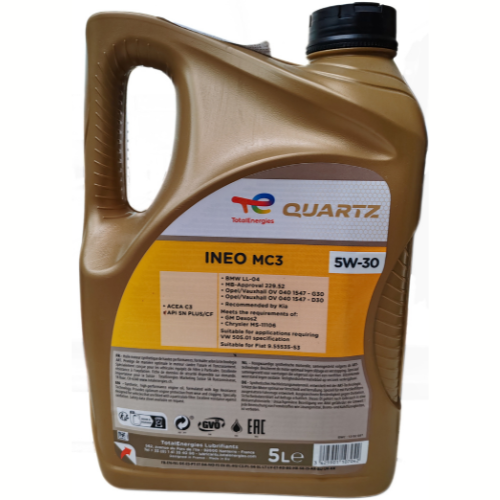 Quartz Ineo MC3 5W-30 is a synthetic Low SAPS engine oil specially formulated to meet the technical requirements of vehicles manufactured by BMW, Mercedes-Benz, Volkswagen and Hyundai Kia.